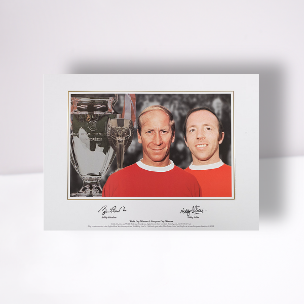 An exclusive photo print of Sir Bobby Charlton and Nobby Stiles with the autographs of the legends.