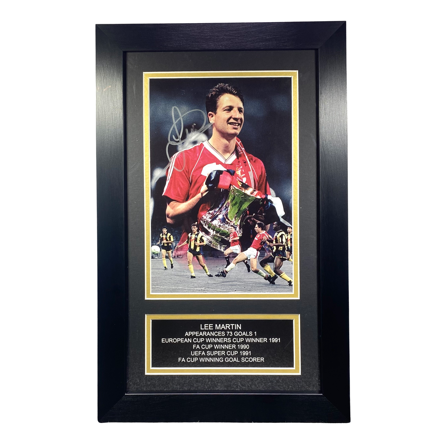 This iconic photo of Lee Martin holding the 1990 FA Cup trophy features his signature.