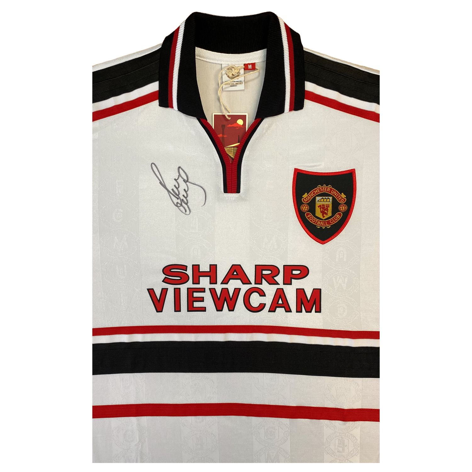 Paul has hand signed these official replica 1999 Manchester United Away shirts. This is the historic shirt as worn by Paul Scholes during The Treble season.